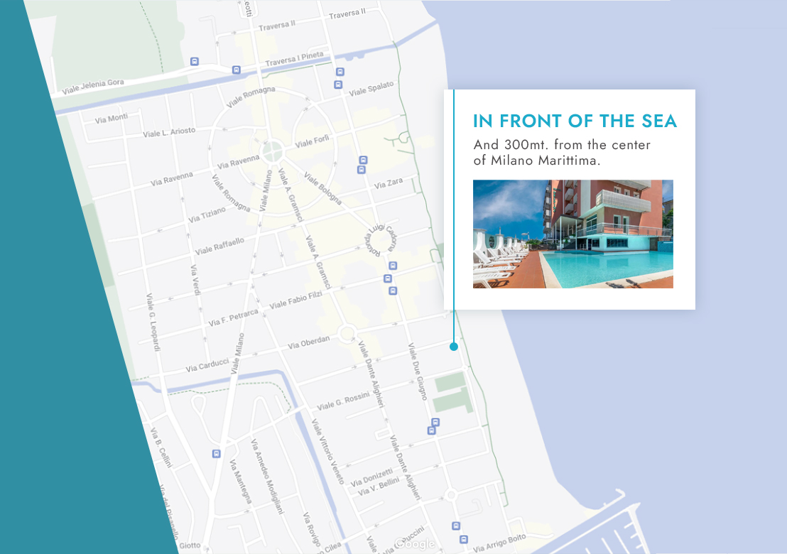Milano Marittima is one of the most famous seaside resorts in Italy. Built within a centuries-old pine forest, it enjoys a privileged position, offering its visitors holidays of relaxation, fun and exclusivity. Known and appreciated by young people for the presence of numerous public places, restaurants and shops, it is also a popular destination for some famous personalities.
